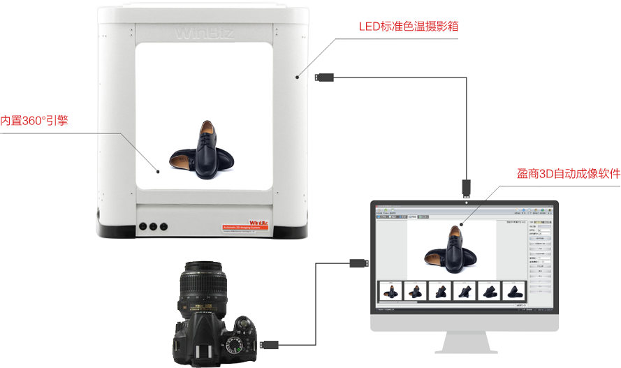 內置5500K標準色溫LED攝影燈,還原產品真實色彩,360 度無暗角布光讓您輕松拍攝!